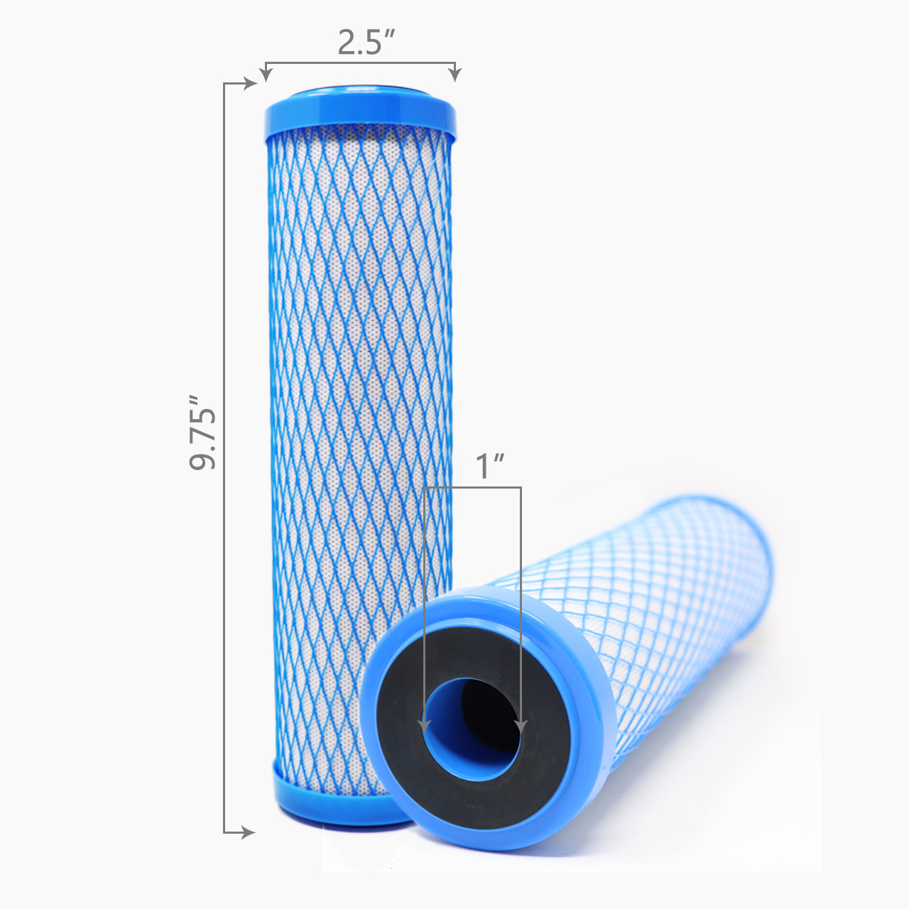 Carbon filtration is an effective way to remove chemicals and contaminants commonly found in tap water. These carbon block cartridges are an excellent choice for taste and odor control, chlorine/chloramines reduction, and organic, lead, cyst and an impressive VOC reduction. Each block is wrapped with a polypropylene outer layer and netting to prevent premature clogging of the carbon block.